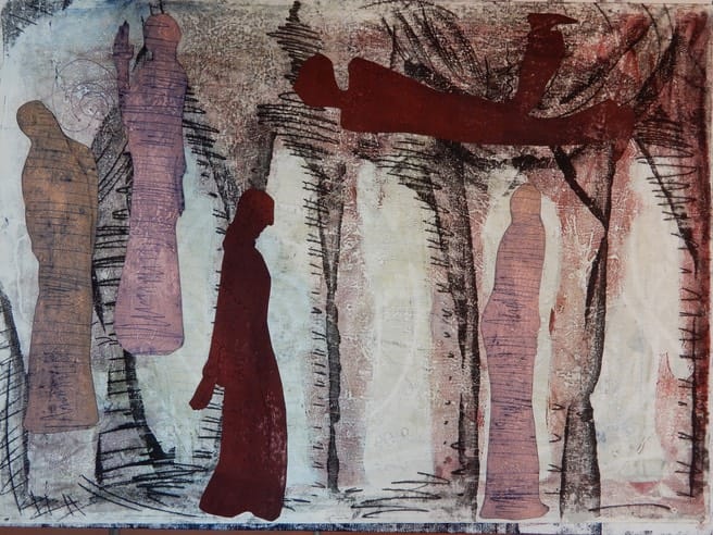 ab 1999 kommen Techniken wie Radierung, Holz- und Linolschnitt und experimentellen Techniken hinzu